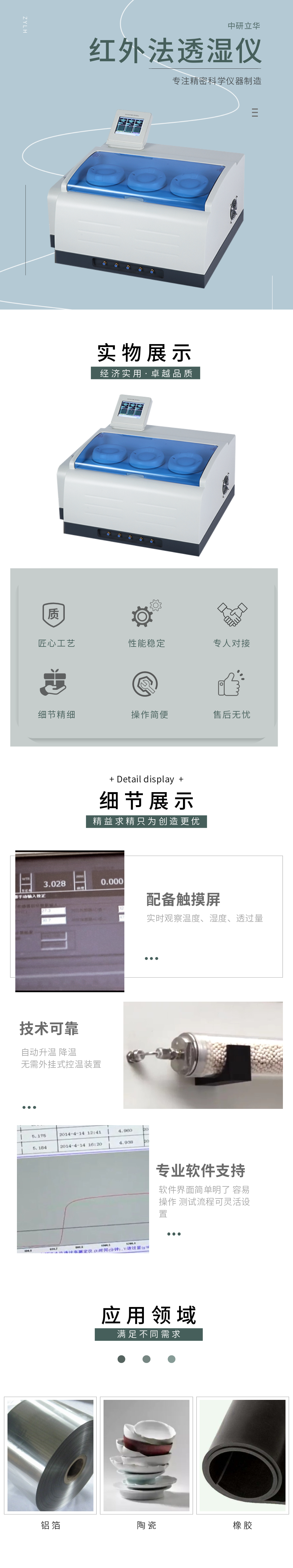 用途:測定薄膜或薄片材料的水汽透過率(量)用于塑料薄膜、復(fù)合薄膜、鋁箔、鍍鋁膜,各種片材、板材、橡膠、陶瓷,包裝容器。應(yīng)用于質(zhì)檢、藥檢、科研、包裝、薄膜、食品、藥品、電子等行業(yè)
